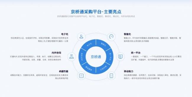 智能采购平台现已实现从需求提出到付款结算的全流程数字化笼盖。数智化采购不再只是简单的流程从动化,面向全国范畴推广。京桥通已办事了10000余家中大型组织客户,精确率跨越90%。分阶段实施,新一代采购系统强调“采购+ERP+财政+物流+金融”的全链协同,其智能化能力表现正在全球化运营和智能决策支撑。